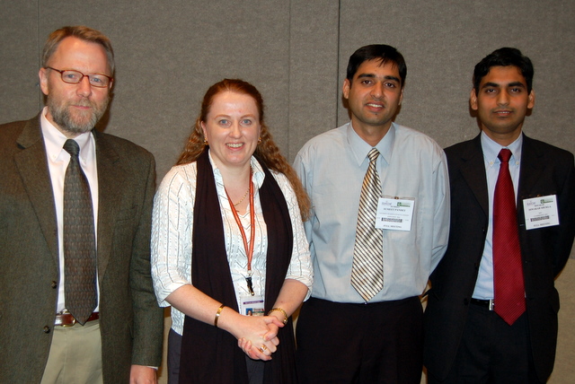 Left to Right: Dave Kofke, Chair of Grad Student Award Committee; Clare McCabe, CoMSEF Chair; Sumeet Pandey; Diwakar Shulka