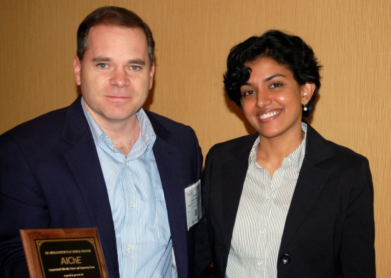 Prof. Jayaraman (right, U. Colorado) accepts the award from Prof. Sholl (CoMSEF chair, Georgia Tech) at the 2013 AIChE Annual Meeting